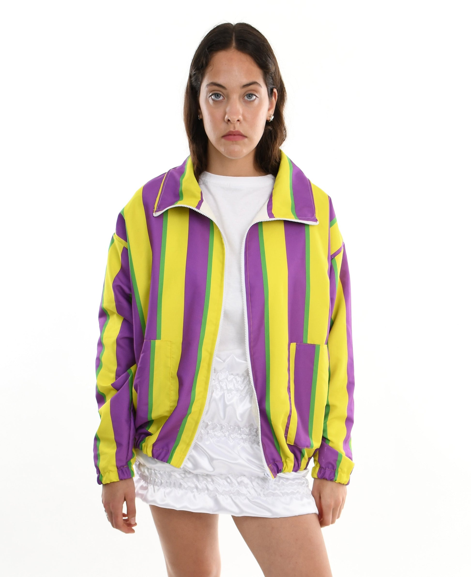 campera ligera con cierre frontal y bolsillos. Confeccionada en tela de microfibra, conocida por su suavidad, resistencia y durabilidad. El diseño a rayas es en sublimación. Ideal para las noches de verano :)